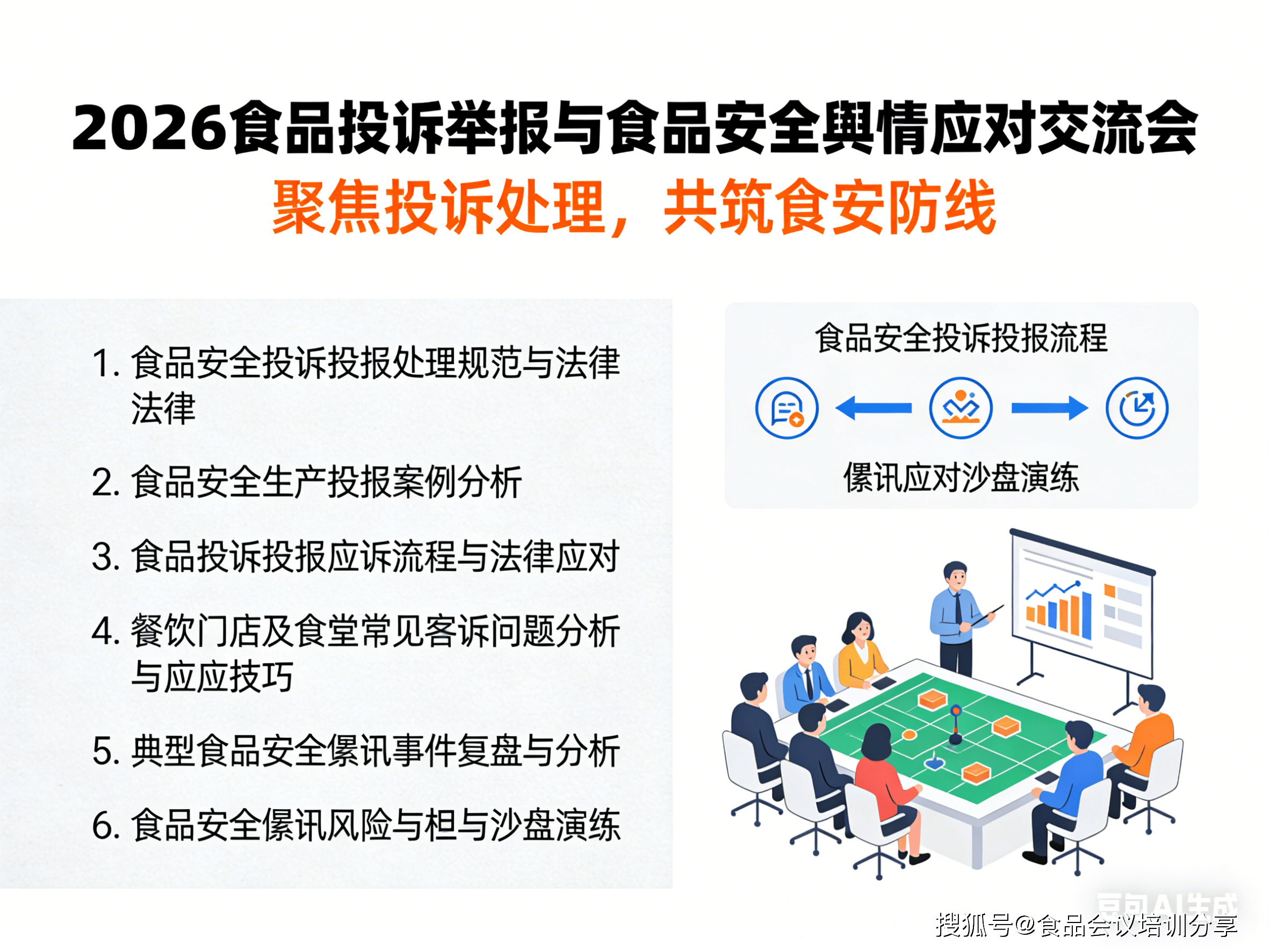 正在食物平安问题频发、消费者认识显著提拔的布景下,食物赞扬举量持续攀升,舆情事务的社会影响力不竭扩大。为应对这一挑和,2026食物赞扬举报取食物平安舆情应对于2026年3月27日正在上海召开,旨正在通过度研讨取经验共享,提拔行业应对能力,会议详情预告如下: